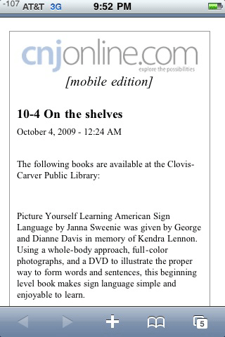 The following books are available at the Clovis-Carver Public Library: